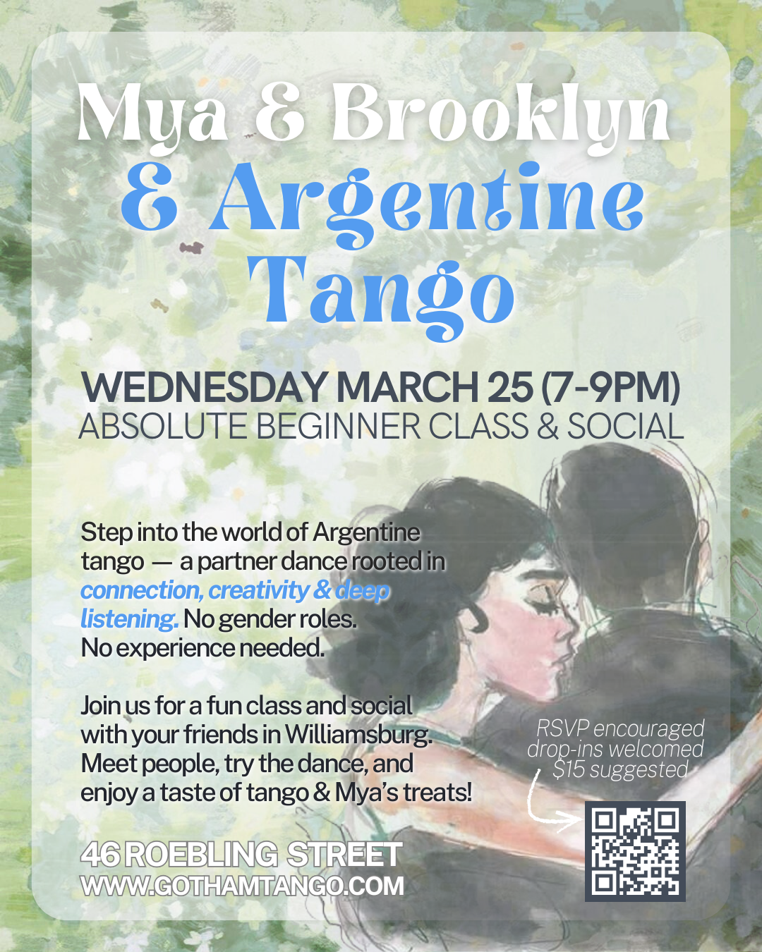 You can join our class series in Brooklyn or Manhattan to get a deeper dive into tango!